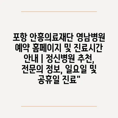 포항 안흥의료재단 영남병원 예약 홈페이지 및 진료시간 안내 | 정신병원 추천, 전문의 정보, 일요일 및 공휴일 진료”