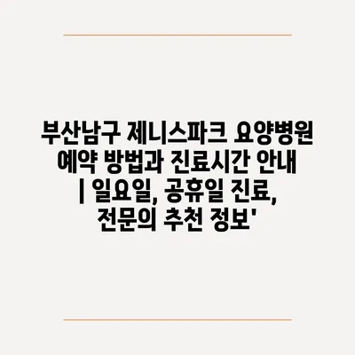부산남구 제니스파크 요양병원 예약 방법과 진료시간 안내 | 일요일, 공휴일 진료, 전문의 추천 정보’