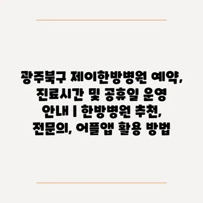 광주북구 제이한방병원 예약, 진료시간 및 공휴일 운영 안내 | 한방병원 추천, 전문의, 어플앱 활용 방법