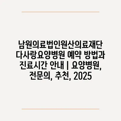 남원의료법인원산의료재단 다사랑요양병원 예약 방법과 진료시간 안내 | 요양병원, 전문의, 추천, 2025