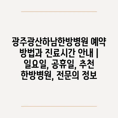 광주광산하남한방병원 예약 방법과 진료시간 안내 | 일요일, 공휴일, 추천 한방병원, 전문의 정보