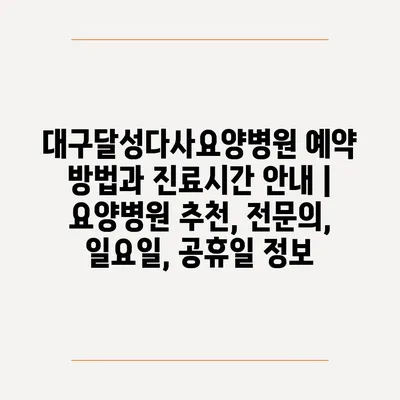 대구달성다사요양병원 예약 방법과 진료시간 안내 | 요양병원 추천, 전문의, 일요일, 공휴일 정보