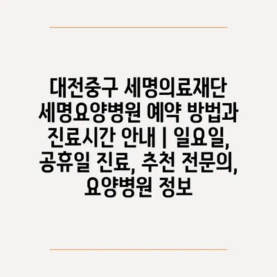 대전중구 세명의료재단 세명요양병원 예약 방법과 진료시간 안내 | 일요일, 공휴일 진료, 추천 전문의, 요양병원 정보