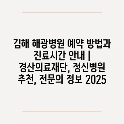 김해 해광병원 예약 방법과 진료시간 안내 | 경산의료재단, 정신병원 추천, 전문의 정보 2025