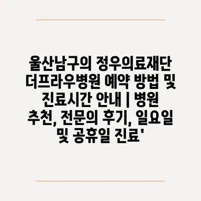 울산남구의 정우의료재단 더프라우병원 예약 방법 및 진료시간 안내 | 병원 추천, 전문의 후기, 일요일 및 공휴일 진료’