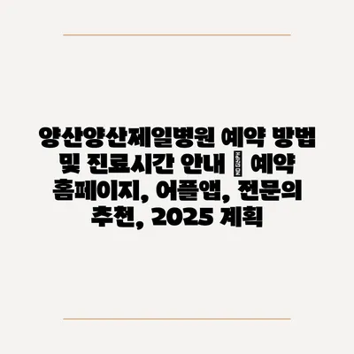양산양산제일병원 예약 방법 및 진료시간 안내 | 예약 홈페이지, 어플앱, 전문의 추천, 2025 계획