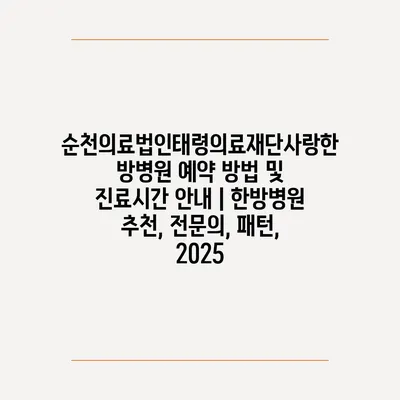 순천의료법인태령의료재단사랑한방병원 예약 방법 및 진료시간 안내 | 한방병원 추천, 전문의, 패턴, 2025