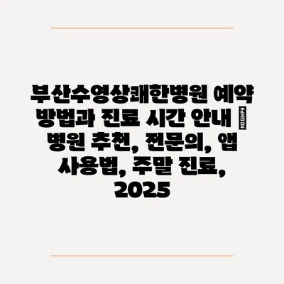 부산수영상쾌한병원 예약 방법과 진료 시간 안내 | 병원 추천, 전문의, 앱 사용법, 주말 진료, 2025