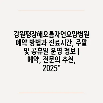 강원평창해오름자연요양병원 예약 방법과 진료시간, 주말 및 공휴일 운영 정보 | 예약, 전문의 추천, 2025″