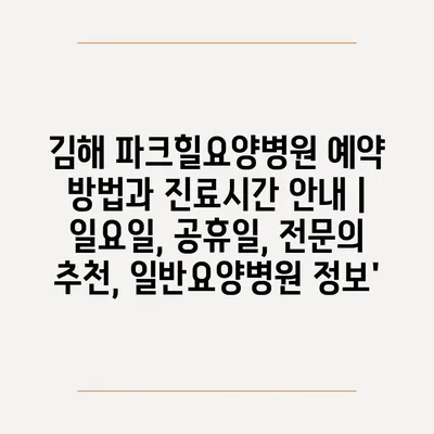 김해 파크힐요양병원 예약 방법과 진료시간 안내 | 일요일, 공휴일, 전문의 추천, 일반요양병원 정보’