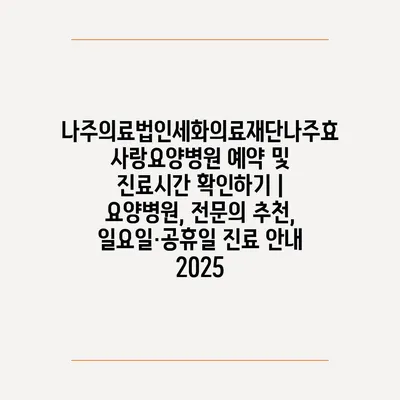 나주의료법인세화의료재단나주효사랑요양병원 예약 및 진료시간 확인하기 | 요양병원, 전문의 추천, 일요일·공휴일 진료 안내 2025