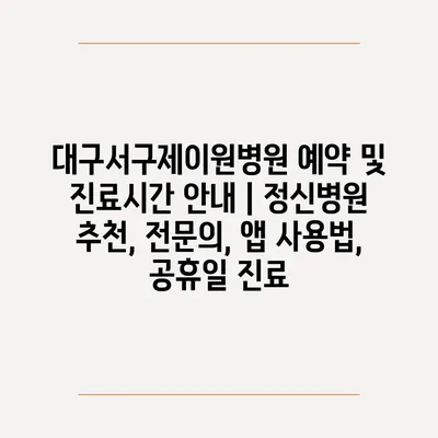 대구서구제이원병원 예약 및 진료시간 안내 | 정신병원 추천, 전문의, 앱 사용법, 공휴일 진료