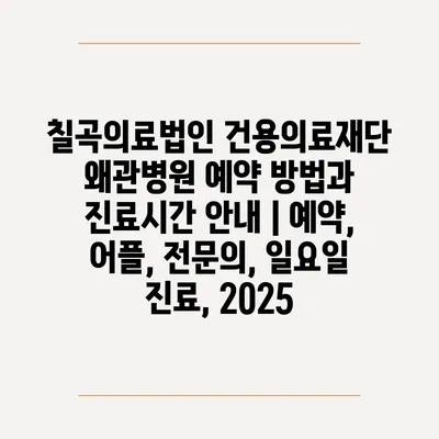칠곡의료법인 건용의료재단 왜관병원 예약 방법과 진료시간 안내 | 예약, 어플, 전문의, 일요일 진료, 2025