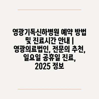 영광기독신하병원 예약 방법 및 진료시간 안내 | 영광의료법인, 전문의 추천, 일요일 공휴일 진료, 2025 정보