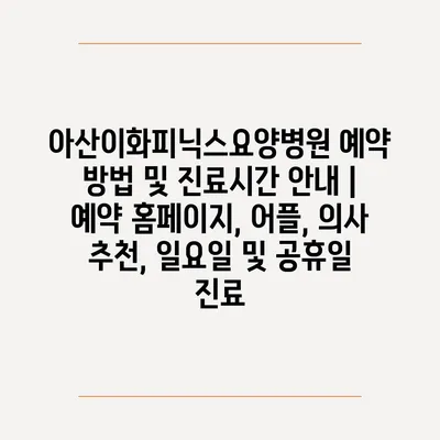 아산이화피닉스요양병원 예약 방법 및 진료시간 안내 | 예약 홈페이지, 어플, 의사 추천, 일요일 및 공휴일 진료