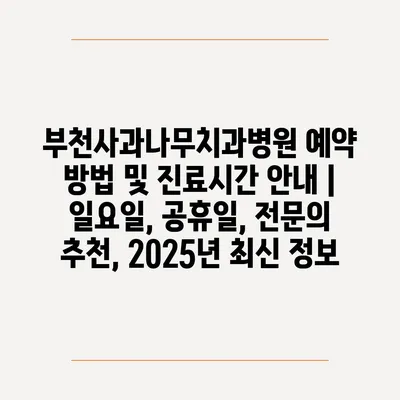부천사과나무치과병원 예약 방법 및 진료시간 안내 | 일요일, 공휴일, 전문의 추천, 2025년 최신 정보