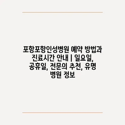 포항포항인성병원 예약 방법과 진료시간 안내 | 일요일, 공휴일, 전문의 추천, 유명 병원 정보