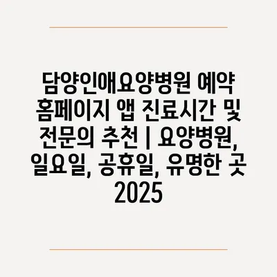 담양인애요양병원 예약 홈페이지 앱 진료시간 및 전문의 추천 | 요양병원, 일요일, 공휴일, 유명한 곳 2025