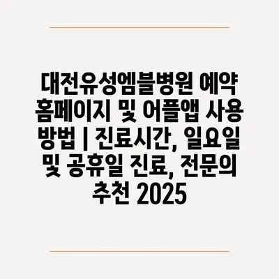 대전유성엠블병원 예약 홈페이지 및 어플앱 사용 방법 | 진료시간, 일요일 및 공휴일 진료, 전문의 추천 2025