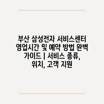 부산 삼성전자 서비스센터 영업시간 및 예약 방법 완벽 가이드 | 부산, 서비스센터, 삼성전자