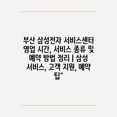 부산 삼성전자 서비스센터| 영업 시간, 서비스 종류 및 예약 방법 완벽 가이드 | 부산, 서비스센터, 예약 팁