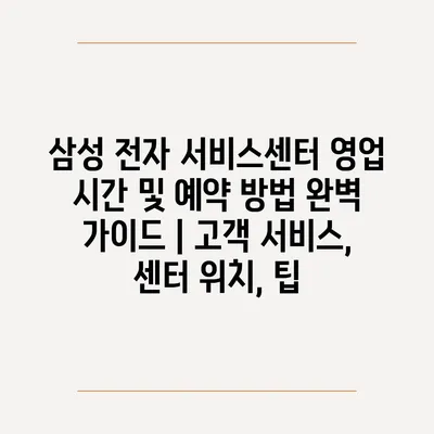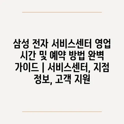 삼성 전자 서비스센터 영업 시간 및 예약 방법 완벽 가이드 | 서비스센터, 지점 정보, 고객 지원