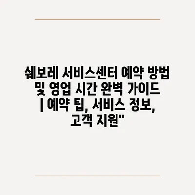 쉐보레 서비스센터 예약 방법 및 영업 시간 완벽 가이드 | 예약 팁, 서비스 정보, 고객 지원”