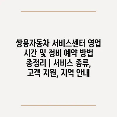 쌍용자동차 서비스센터 영업 시간 및 정비 예약 방법 완벽 가이드 | 서비스 종류, 팁, 고객센터 연락처