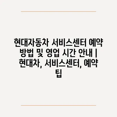 현대자동차 서비스센터 예약 방법 및 영업 시간 안내 | 현대차, 서비스센터, 예약 팁