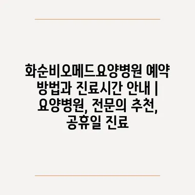 화순비오메드요양병원 예약 방법과 진료시간 안내 | 요양병원, 전문의 추천, 공휴일 진료