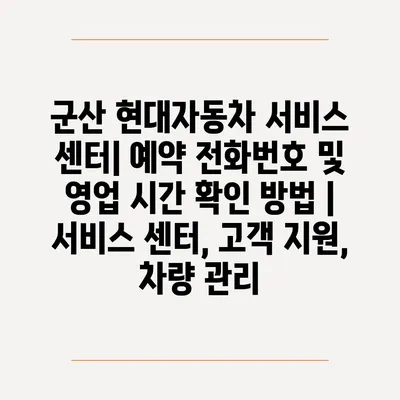군산 현대자동차 서비스 센터| 예약 전화번호 및 영업 시간 확인 방법 | 서비스 센터, 고객 지원, 차량 관리